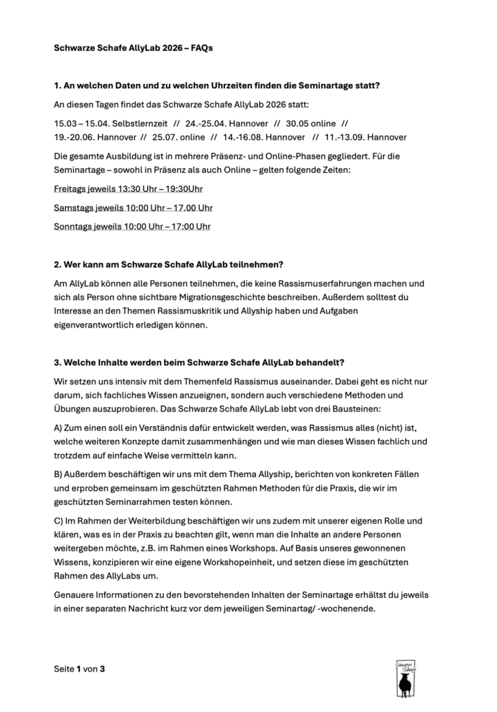 Nach dem überwältigenden Feedback zu unserem PowerLab und den zahlreichen Anfragen von Menschen ohne eigene Rassismuserfahrungen starten wir mit dem SCHWARZE SCHAFE AllyLab 2026 ins neue Jahr.